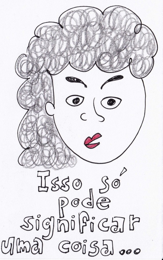 É uma entrevista com político. A repórter pergunta: “senhor, sim ou não?” A resposta do entrevistado sai de São Paulo, passa por cachoeiras pra chegar a Minas Gerais, faz uma caminhada até o Piauí, dança com vendedoras de acarajé em Salvador, volta de carona, dá um pulo na lanchonete pra tomar um suco e comer um pastel, retoma o assunto, coloca um ponto final, diz “bem, é isso” – e ninguém entende o que aquilo sintetiza. Nesse momento a repórter poderia forçar “senhor, imagine que tem uma arma na sua cabeça, sim ou não?”, mas peixes ensaboados não se deixam pegar.