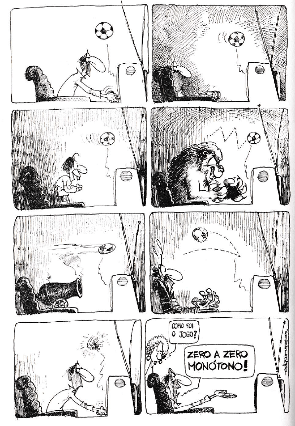 2. A compilação não é muito boa, mas causa leve simpatia: olhar do futuro tanto humor fraco feito no passado dá uma sensação engraçada e até maternalista de poder julgar duma posição confortável aquilo alheio que não resistiu ao tempo — coisa que os autores desconheciam em 1975. Uma criança empolgada vem te mostrar seus desenhos e você sente ternura pelo desastre que ela não tem condições de avaliar porque presa numa mentalidade irresistível. Espírito humorístico de época também aprisiona.
