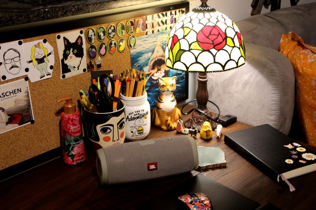 Não uso calças jeans nem salto alto. Sempre tive sobrepeso. Vestuário: como se Hermeto Pascoal às vezes usasse preto também. Tecidos: algodão e viscose. Calçados: chinelo e tênis. Filmes: Almodóvar, os antigos do Scorsese, Ingmar Bergman, Billy Wilder, Irmãos Coen. De vez em quando recomendo filmes no blog, mas vejo pouco (e revejo muito). Acho dente de ouro bonito. Bebidas: cerveja, vinho, caipirinha (com melado, não com açúcar) – nessa ordem. Inglês ruim. Não, não falo alemão. Conheci meu namorado no Mercado Livre, em 2011 – eu procurava um LP de tributo ao Poison Idea, ele vendia o LP. O André é vegano, ateu, mais velho, domina o português escorreito, sabe muitas coisas que eu não sei (e que me interessam), tem gosto musical tão eclético quanto o meu, gosta de viajar, nunca ficamos sem assunto – ou seja, uma raridade. É uma das poucas pessoas no mundo perto das quais me sinto geralmente à vontade (totalmente à vontade, só na solidão). Moramos num pequeno apartamento (não tem 60m²), e conseguimos, graças à marcenaria sob medida e a algumas habilidades de Tetris, montar uma biblioteca com quase 3.500 livros nessa casinha. Não, não parece casa de acumuladores, dá pra dançar tranquilamente na sala.